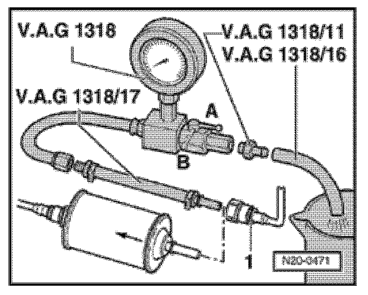 - Connect a High pressure fuel gauge between the fuel filter and the fuel supply line.