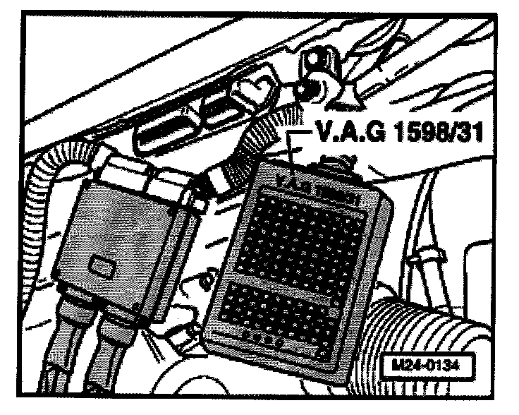 - Connect test box VAG 1598/31 to control module wiring harness. The engine control module remains disconnected.