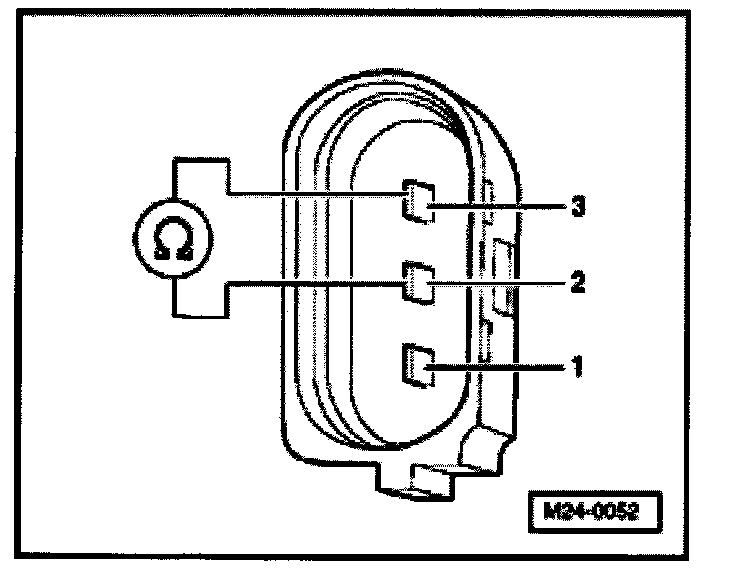 - Measure resistance of sensor between terminals 2 + 3 at connector to sensor.