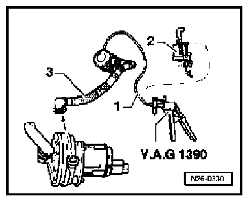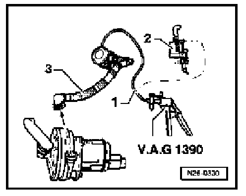 - Connect hand pump VAG 1390 to vacuum hose-i-.