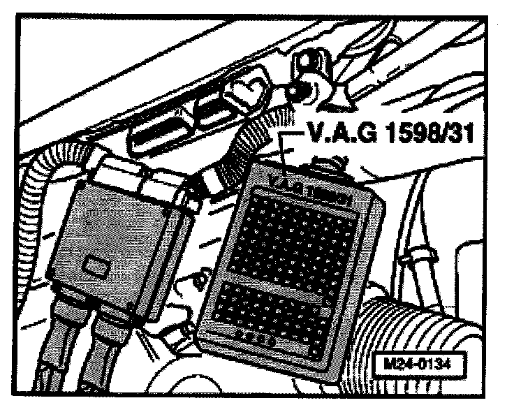 - Connect test box VAG1598/31 to control module wiring harness. The engine control module remains disconnected.