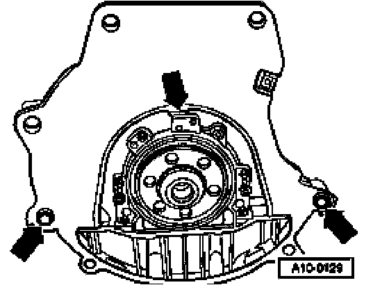 - Install intermediate plate onto sealing flange and slide onto dowel sleeves -arrows-.