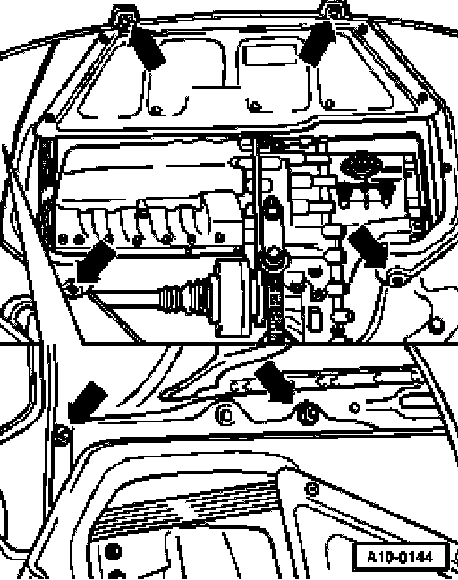 - Check whether dowel sleeves for centering engine/transmission are in cylinder block, install if necessary.