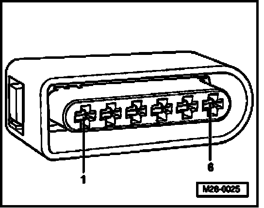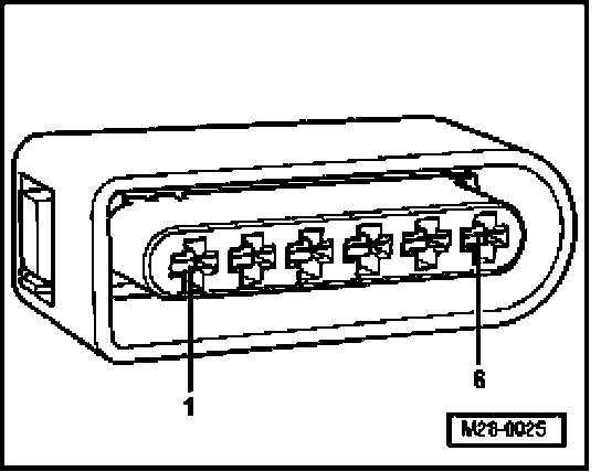 - Check wire between 6-pin connector terminal 6 and Motronic Engine Control Module (ECM) Power Supply Relay -J271- for open circuit according to wiring diagram. Wire resistance: max. 1.5 ohms