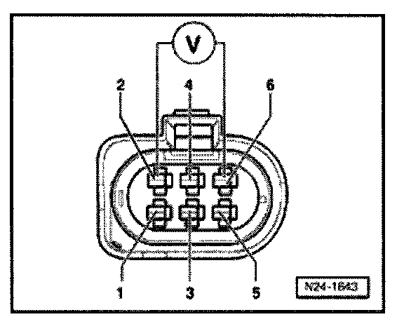 - Connect multimeter to connector terminals 2 + 6 for voltage measurement.