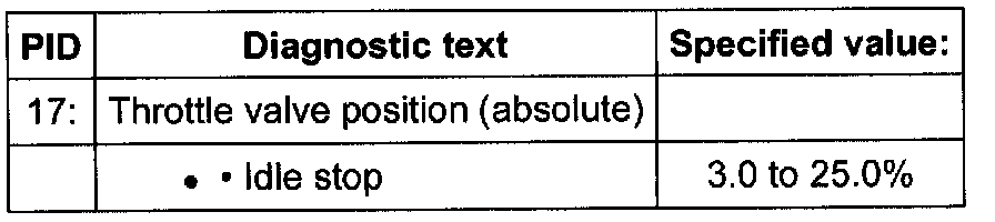 - Check specified value of throttle valve position (absolute) at idle stop: