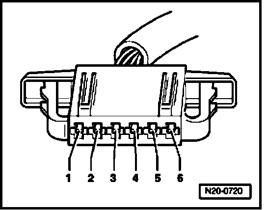 - Check wires between test box and 6-pin connector for open circuit according to wiring diagram. Terminal 1 + socket 72, Terminal 2 + socket 73, Terminal 3 + socket 36, Terminal 4 + socket 35, Terminal 5 + socket 33, Terminal 6 + socket 34: Wire resistance: max. 1.5 Ohms