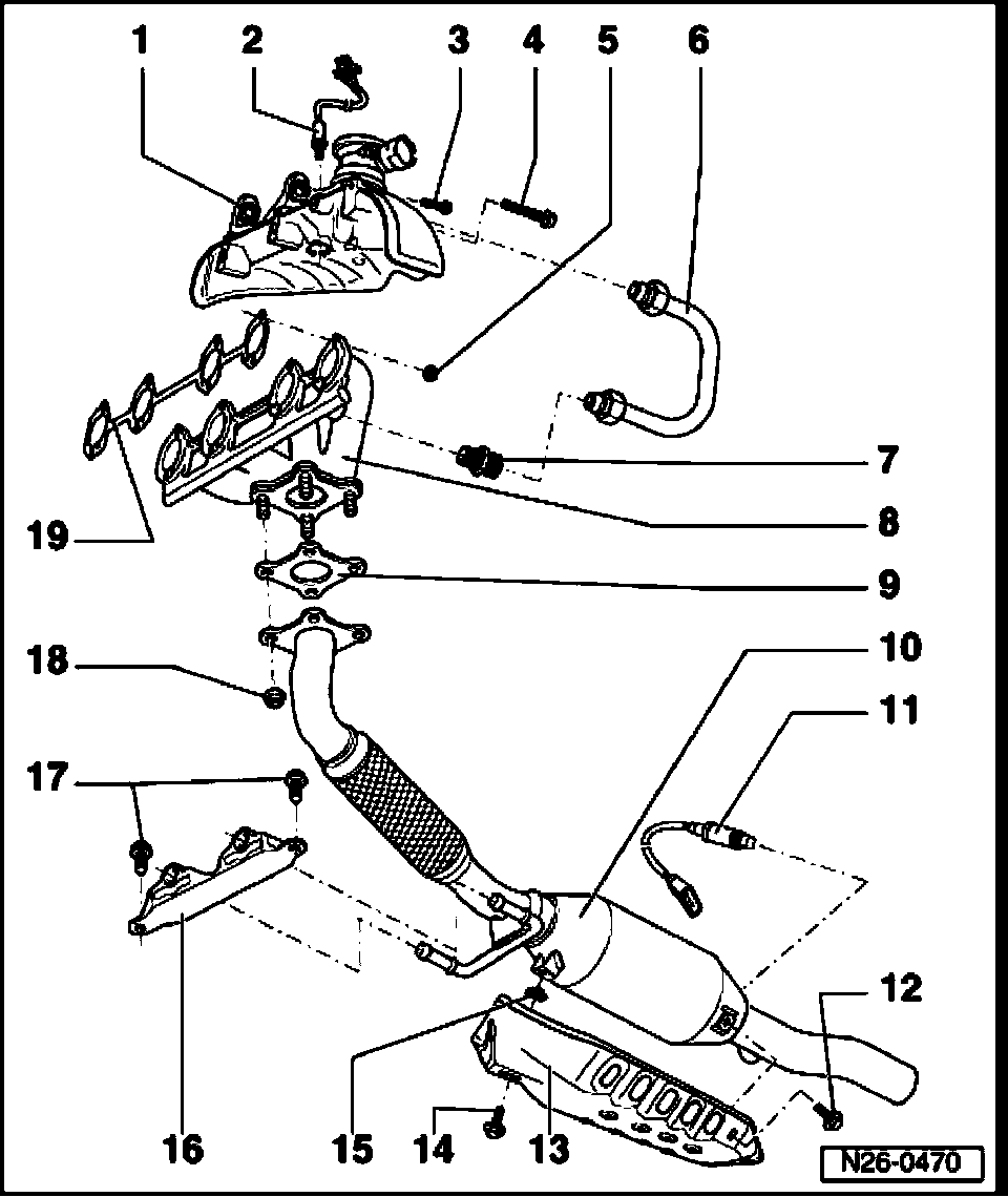 Exhaust Manifold, Front Exhaust Pipe With Three Way Catalytic Converter (TWC) And Attachments (vehicles With Engine Code AVH, AZG, BDC)
