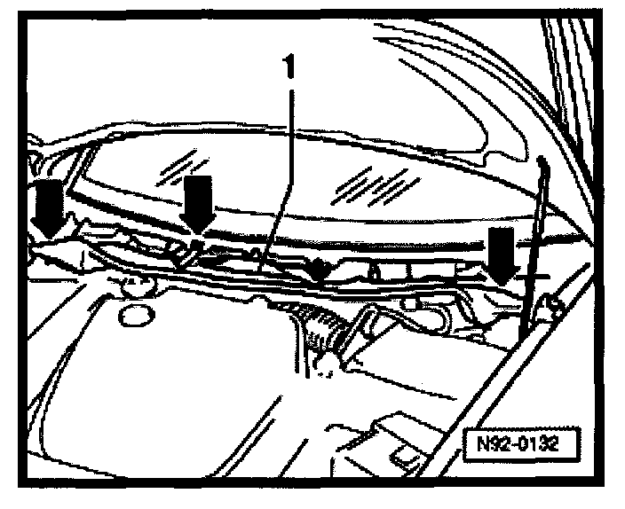 - Pull up plenum panel rubber gasket -1 - and remove.