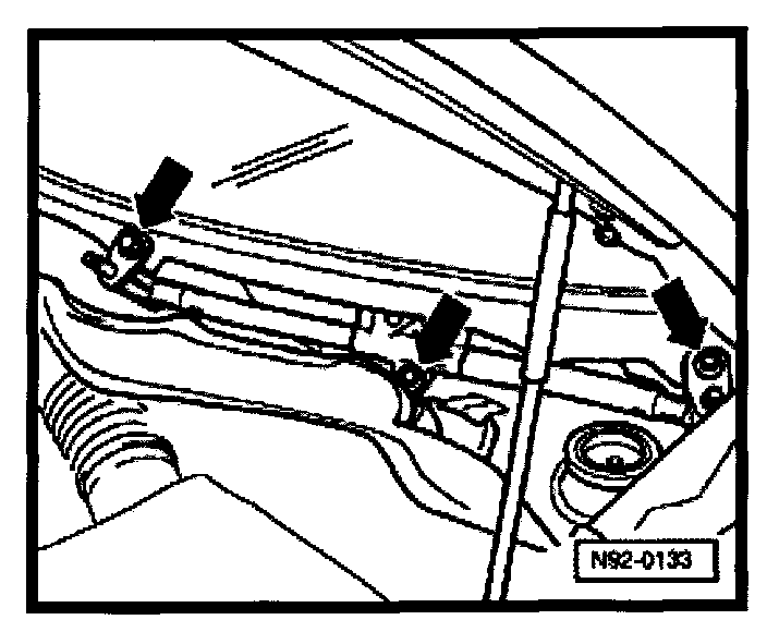 - The wiper arm and cowl panel must be removed to remove the wiper frame with rods and wiper motor.