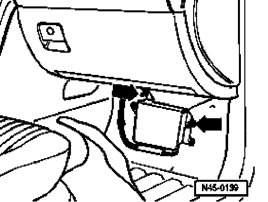 ^ Pull front right floor carpet back until the ABS/ESP control module in area of bulkhead is free.