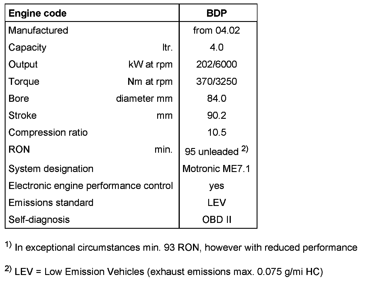 2) LEV = Low Emission Vehicles (exhaust emissions max. 0.075 g/mi HC)