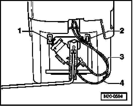 - Lift retaining tabs - 1 - and - 2 - with a screwdriver and pull Auxiliary tank fuel level sensor -G292- out downward.