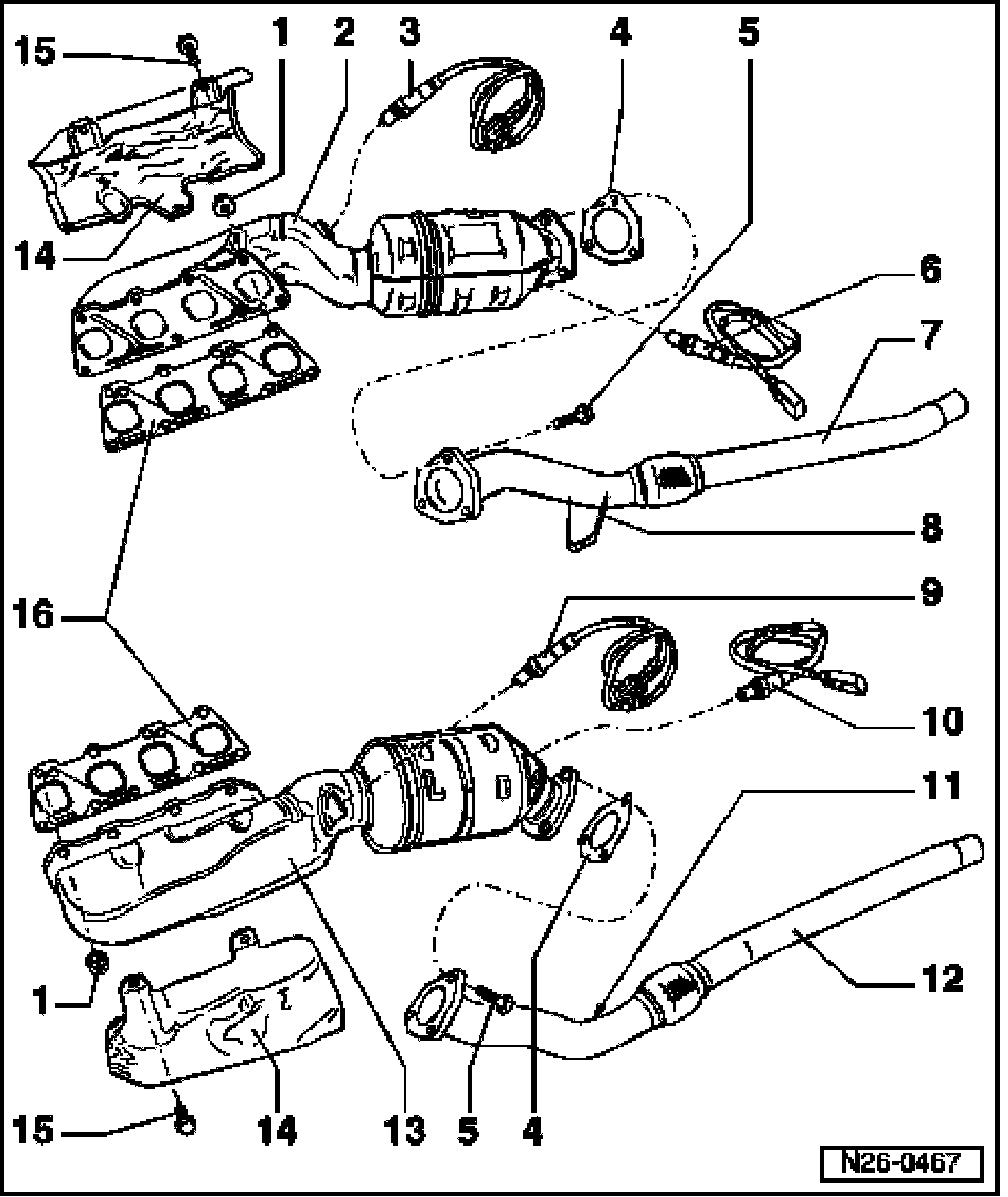 13 Exhaust manifold with left catalytic converter module