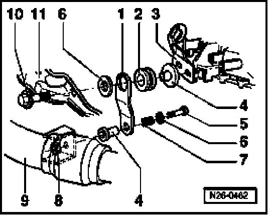 Fig. 3 Individual right mounting components for vehicles with manual transmission