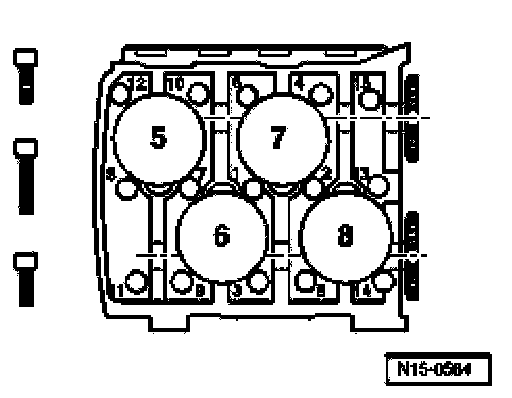 ^ Tighten bearing caps 4 and 8 alternately and diagonally to 5 Nm and 1/4 turn (45°) further.