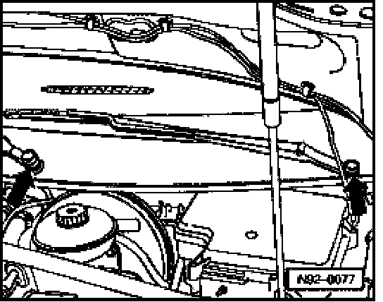 - Vehicles through 09.00: remove screw -arrow- and carefully lift cowl panel upwards.