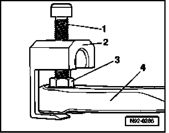 - Place locating arms of puller T10130 -2- under wiper arm -4- as illustrated.