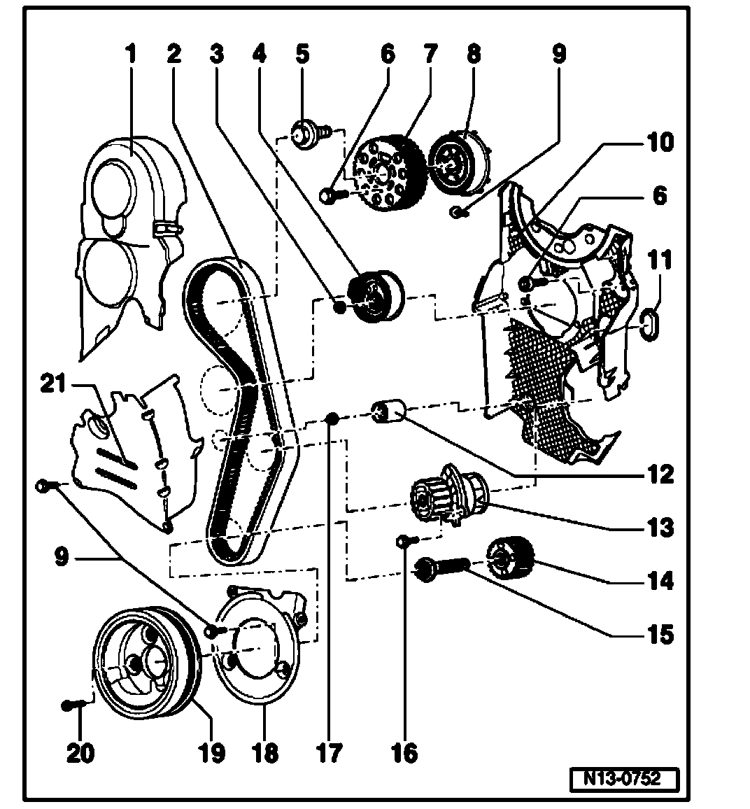 14. Crankshaft toothed belt pulley