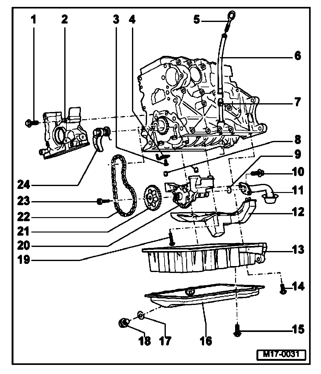 24. Chain tensioner with tensioning rail, 15 Nm