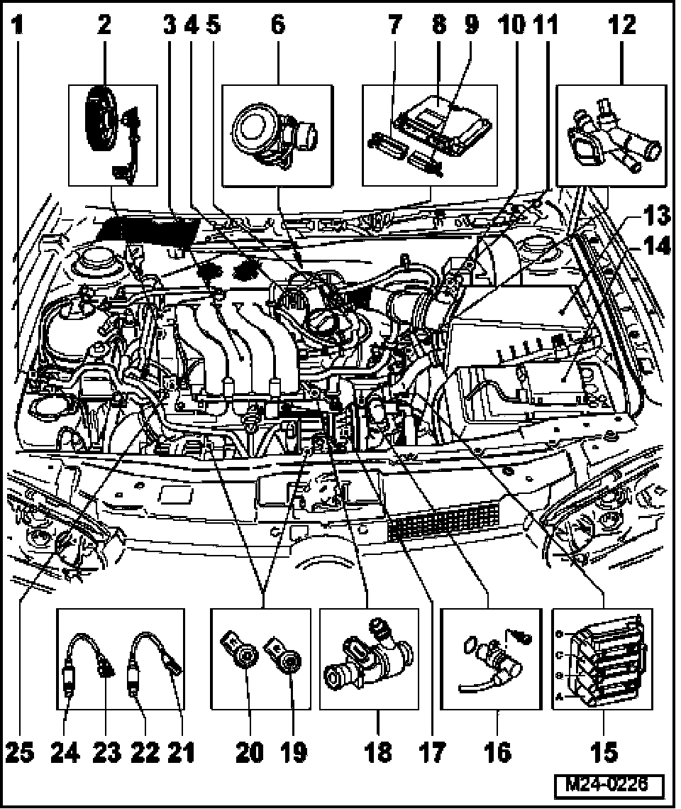 Overview of Component Locations (Vehicles with engine code AVH, AZG)