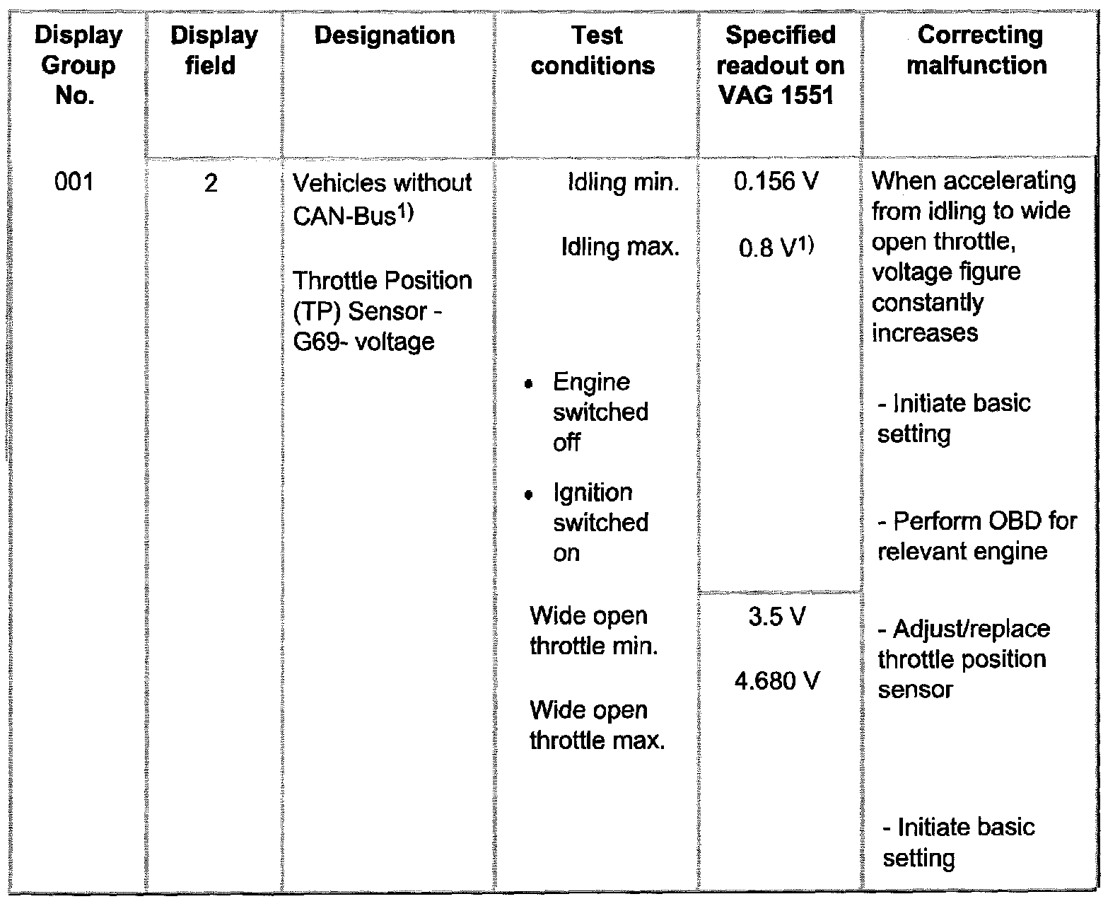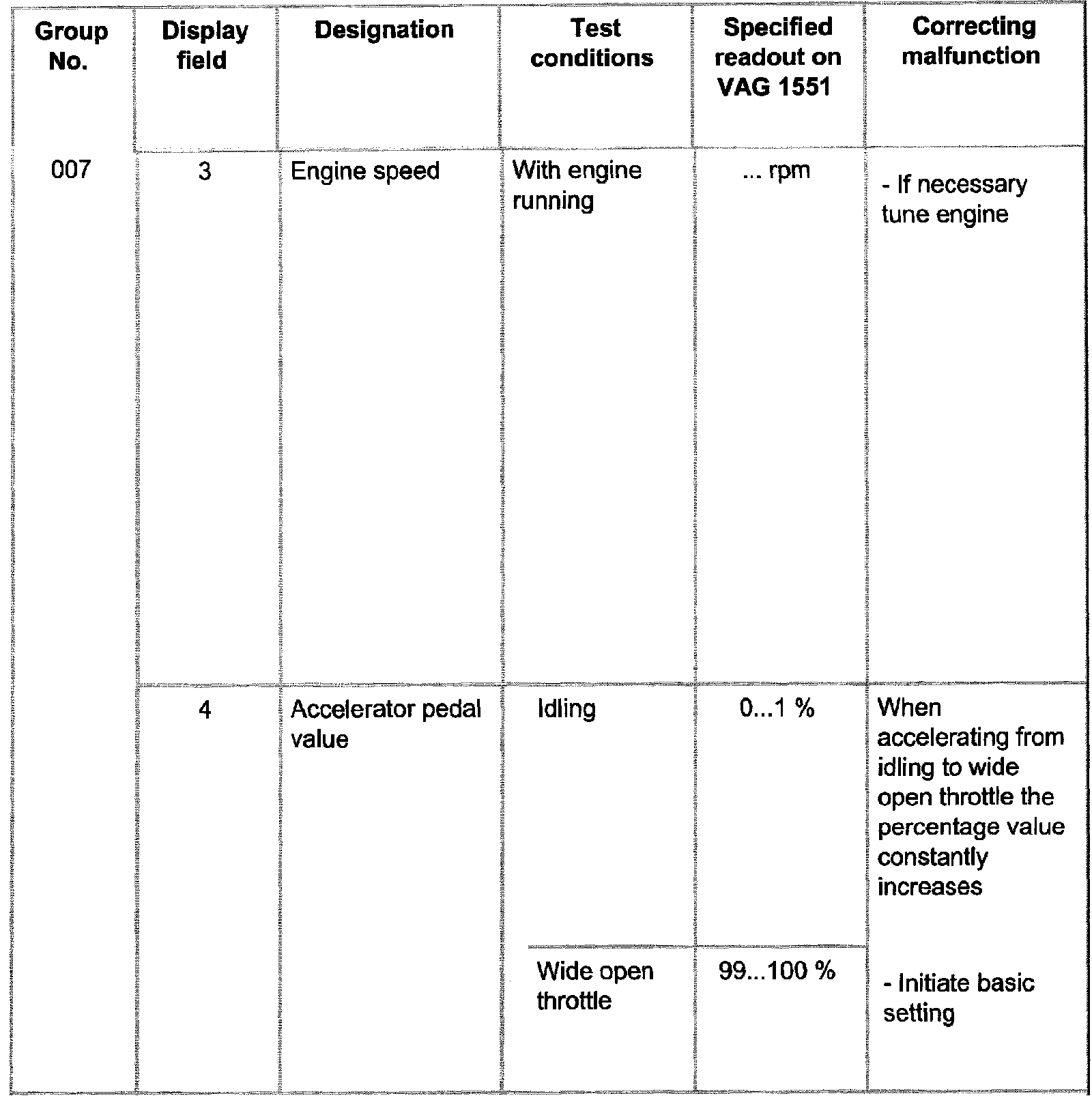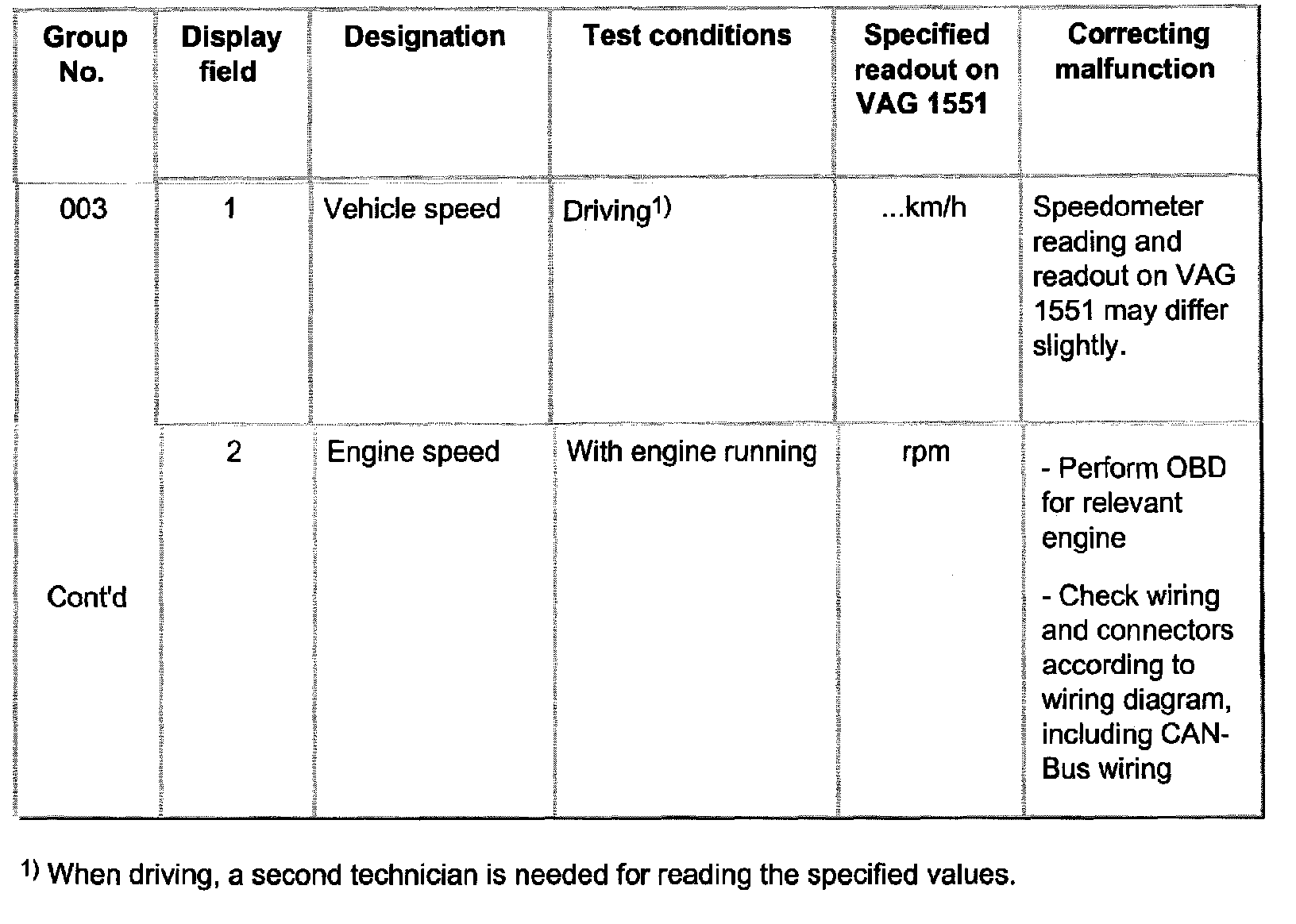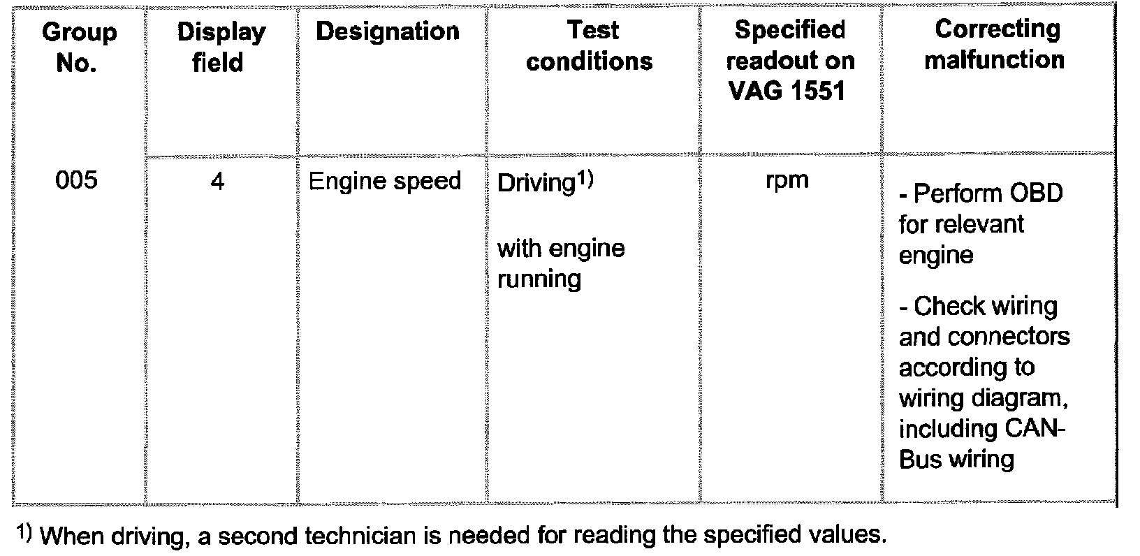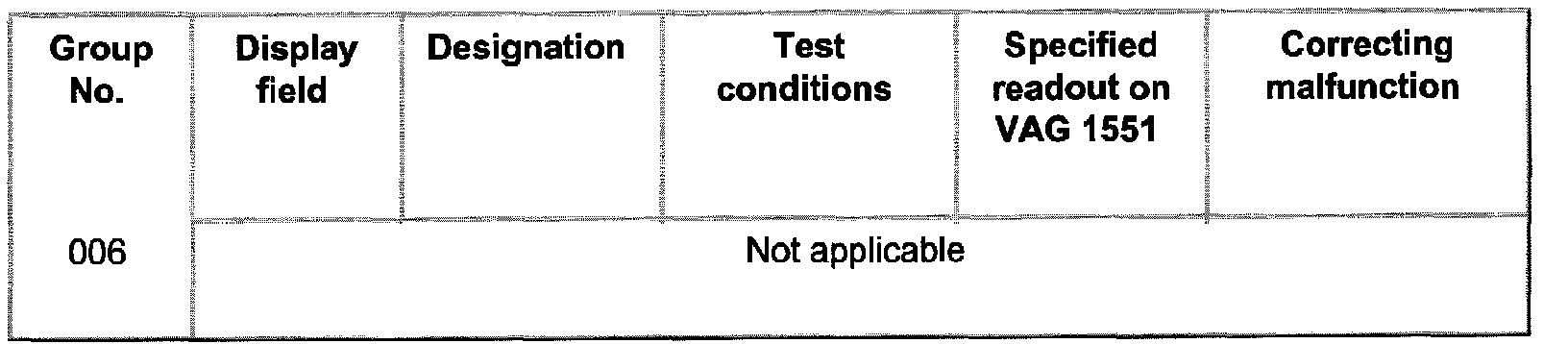 - VAG 1551 display field 1 has 6 characters (000000) and is read as follows: