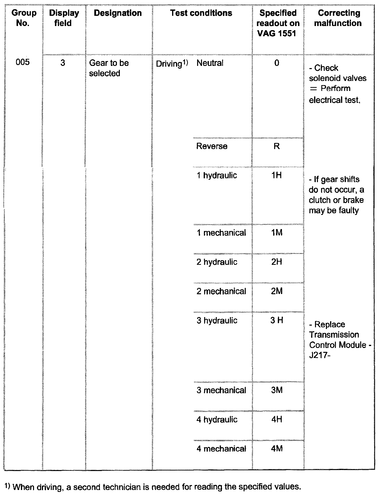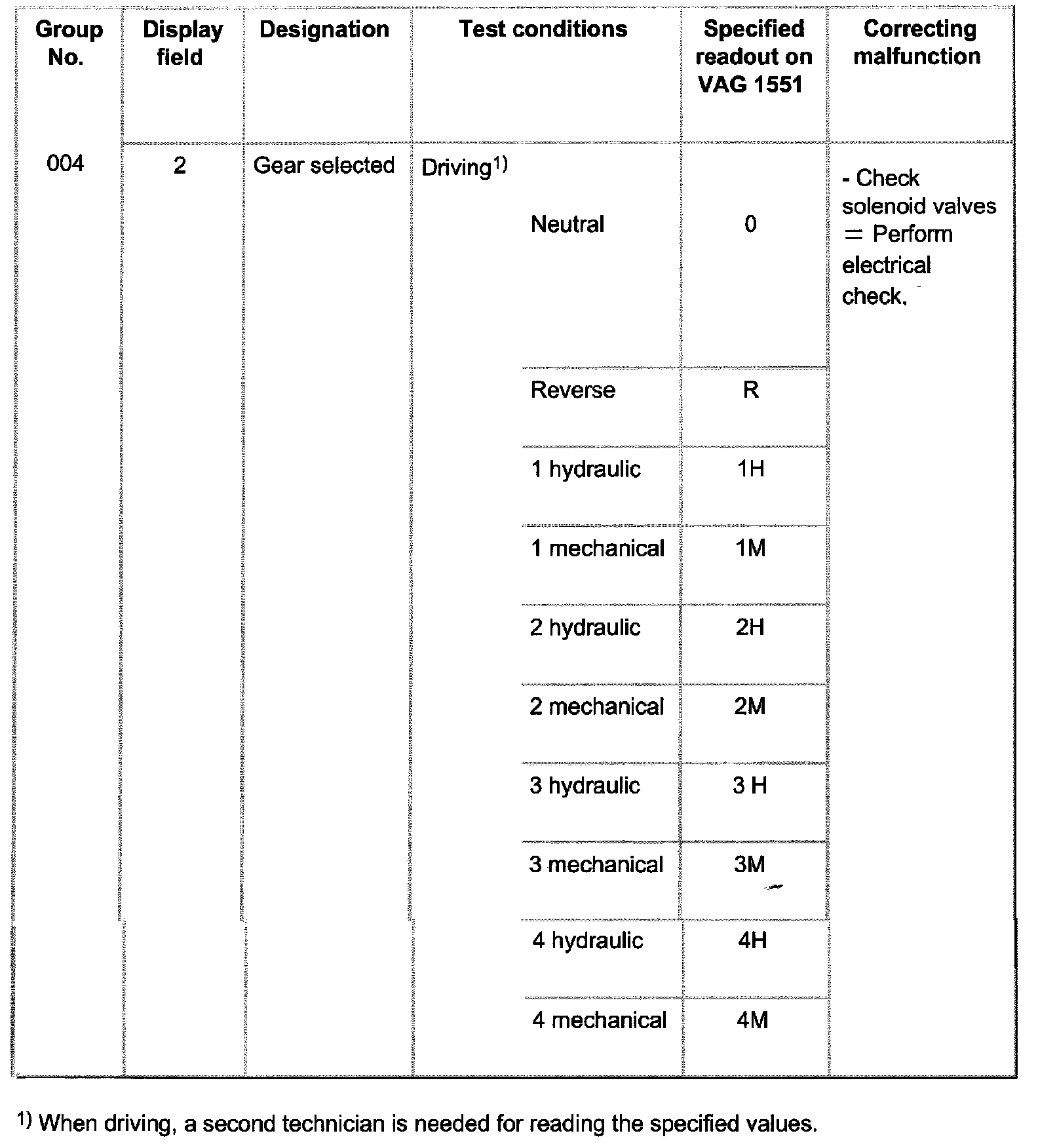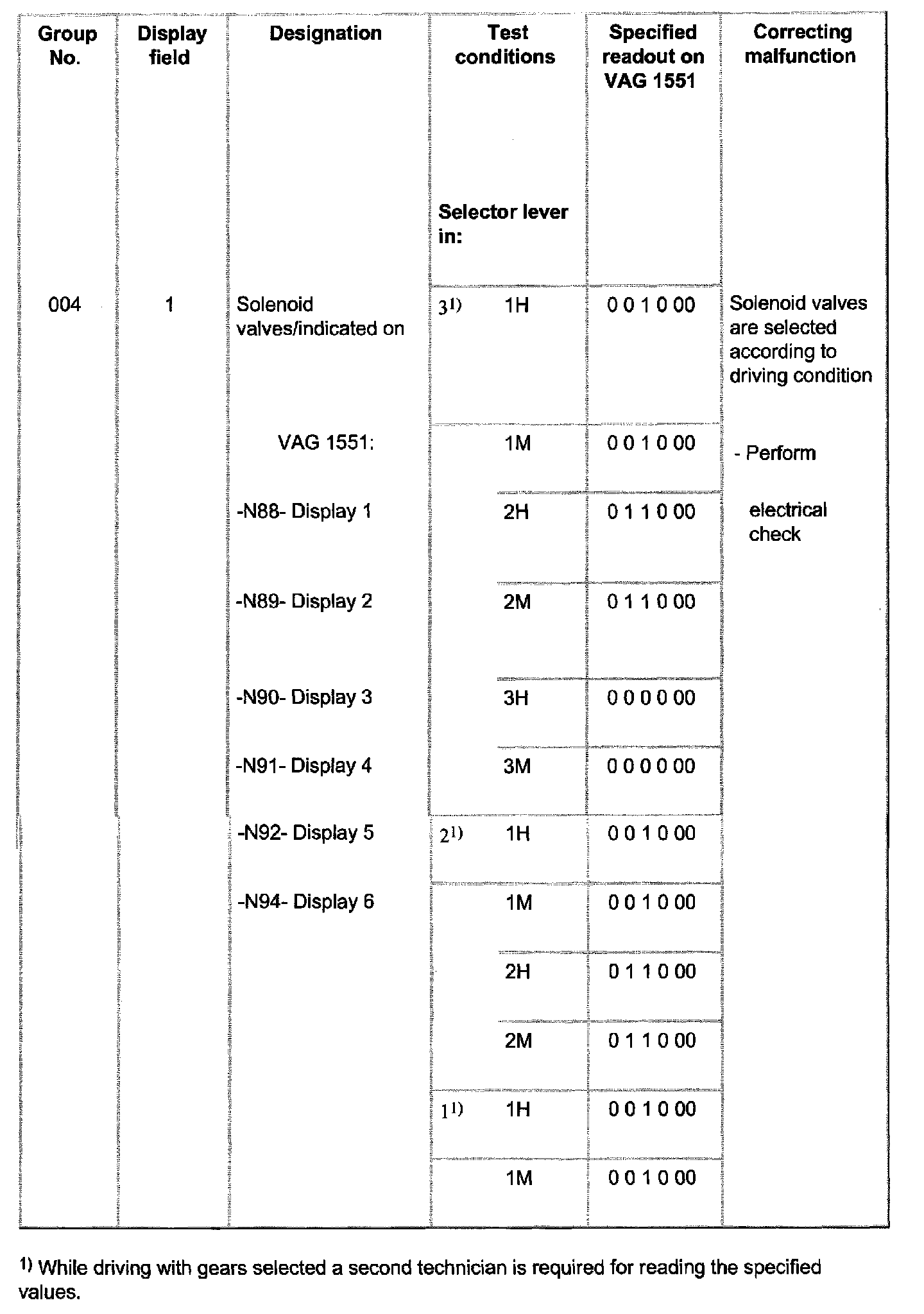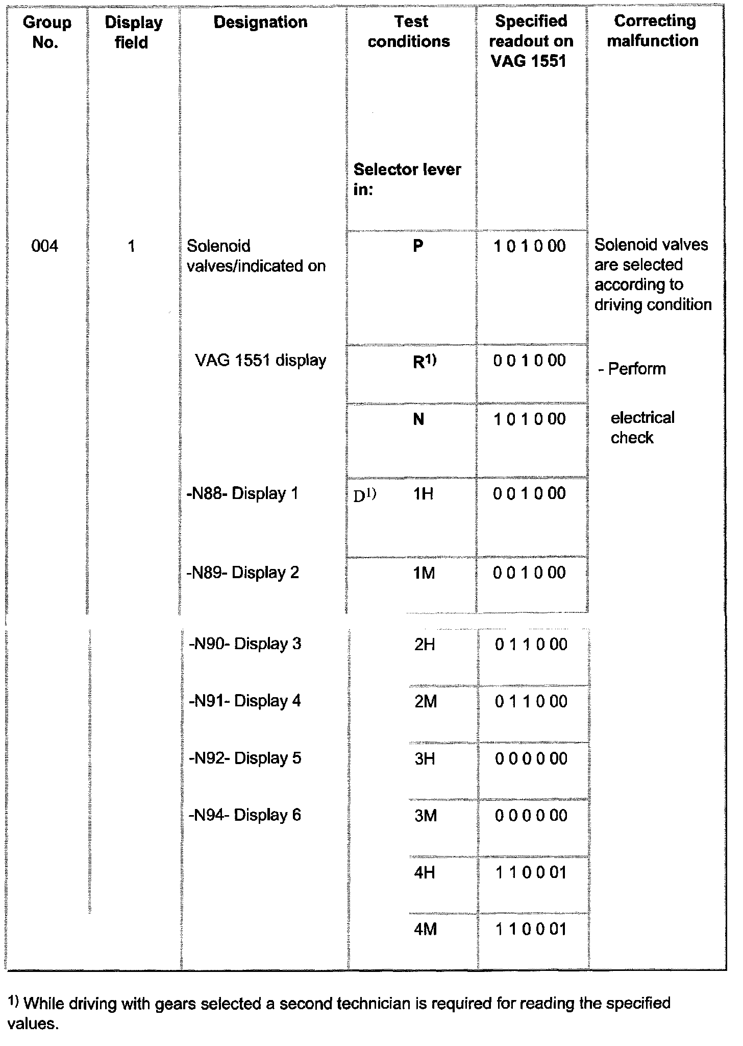- The solenoid valves can be checked while driving via "Read measured value block 08"; display group number 004.