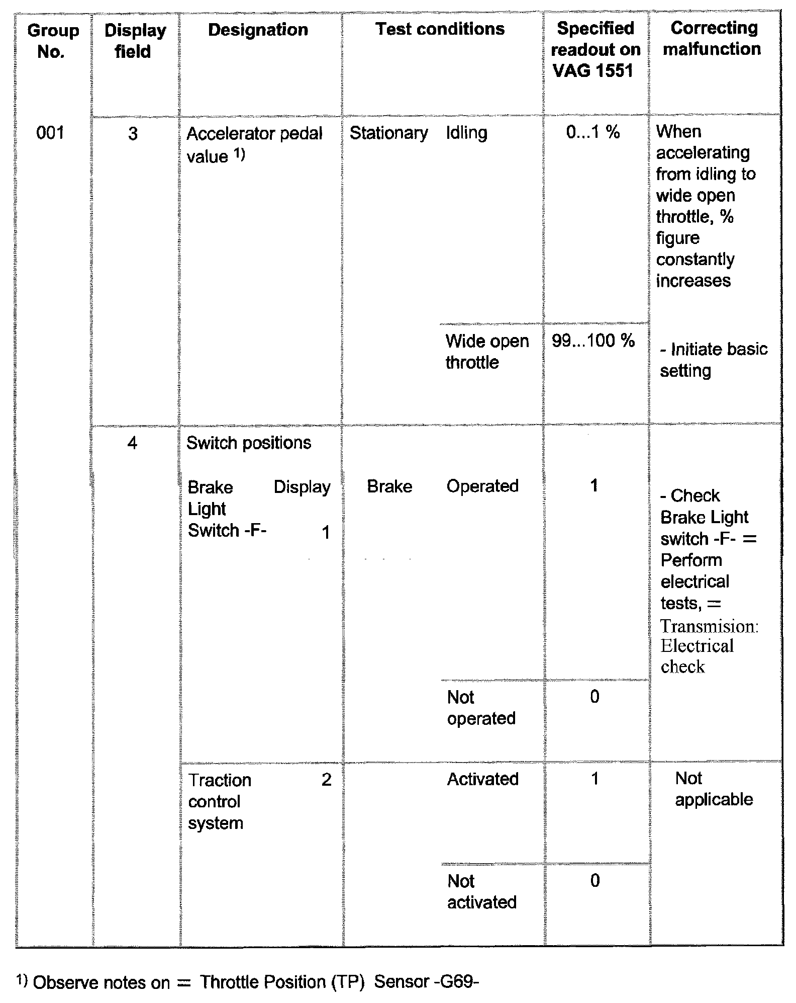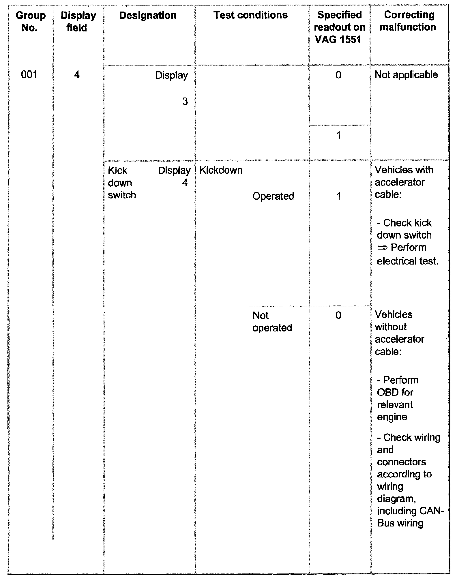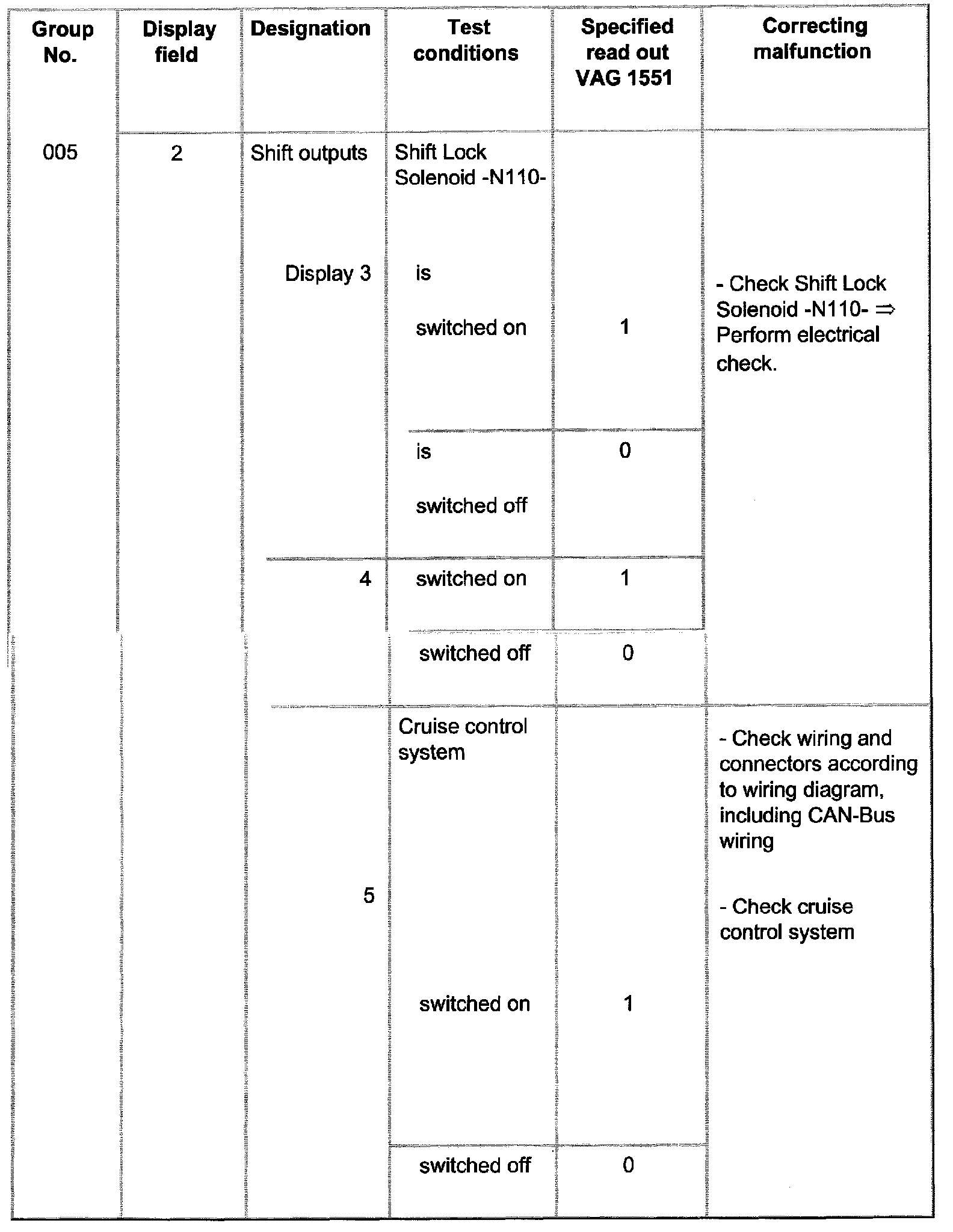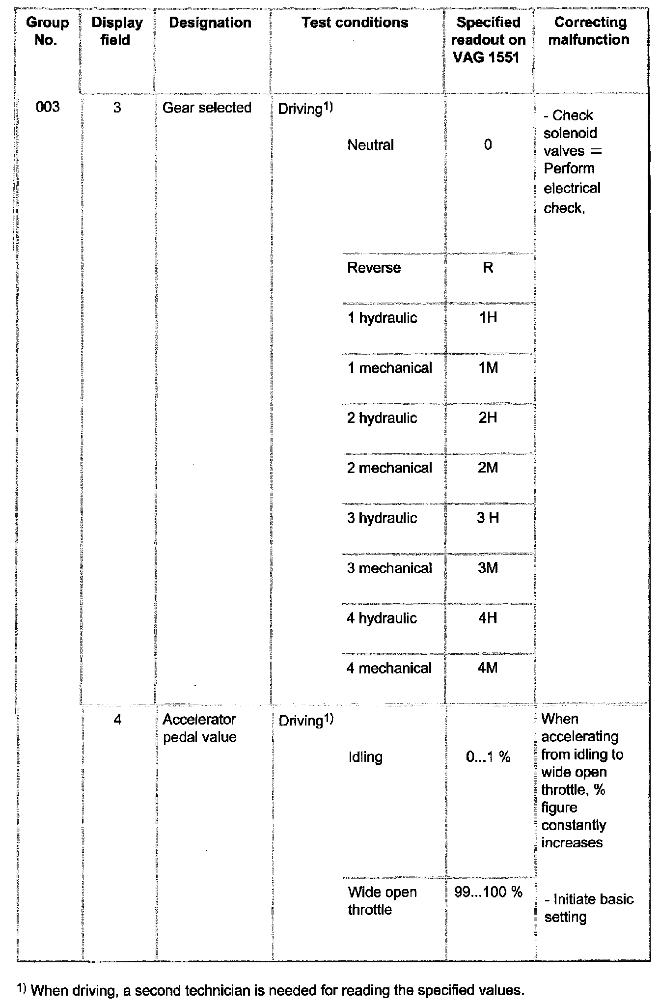 - The solenoid valves can be checked while driving via "Read measured value block 08"; display group number 004.