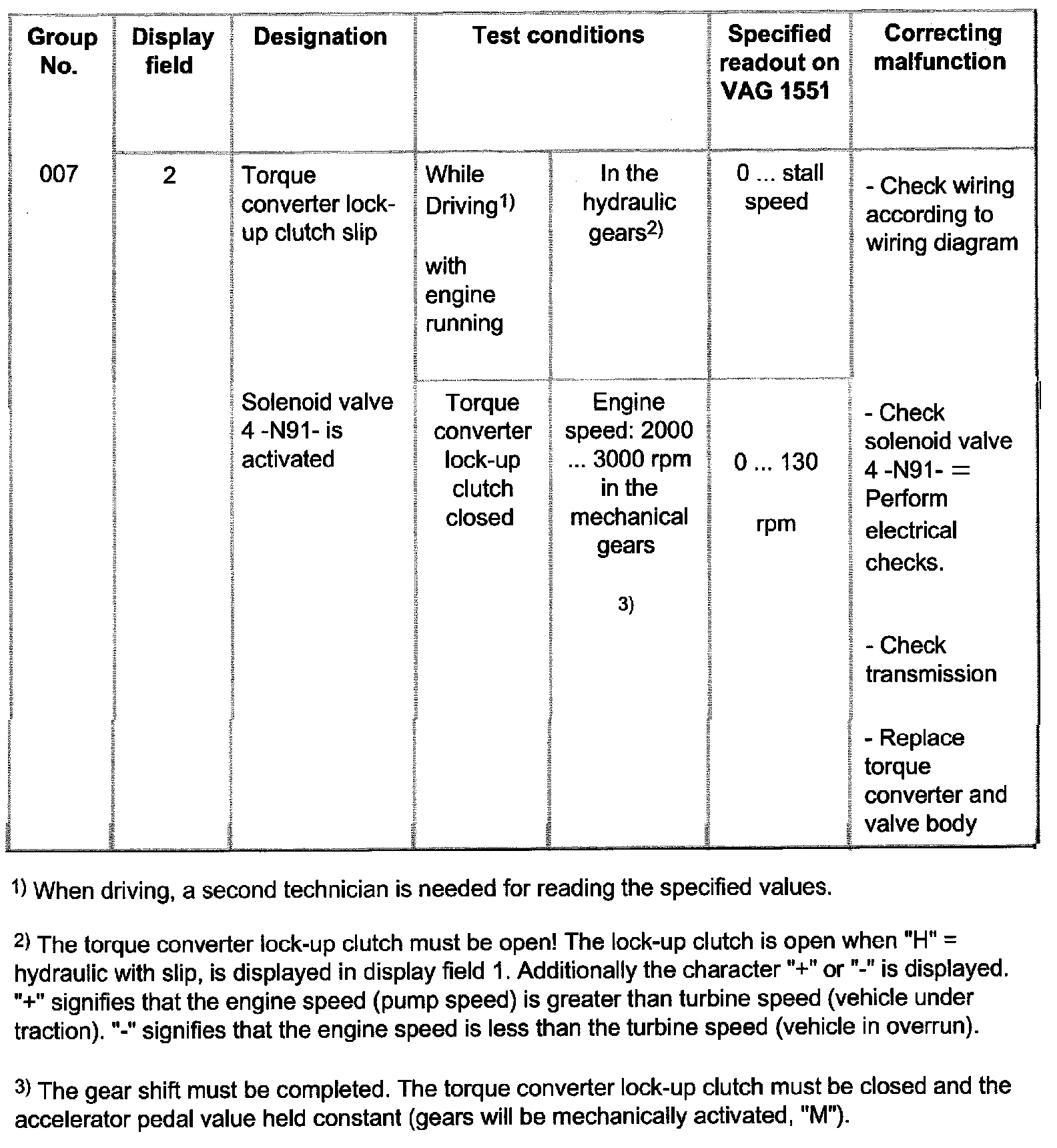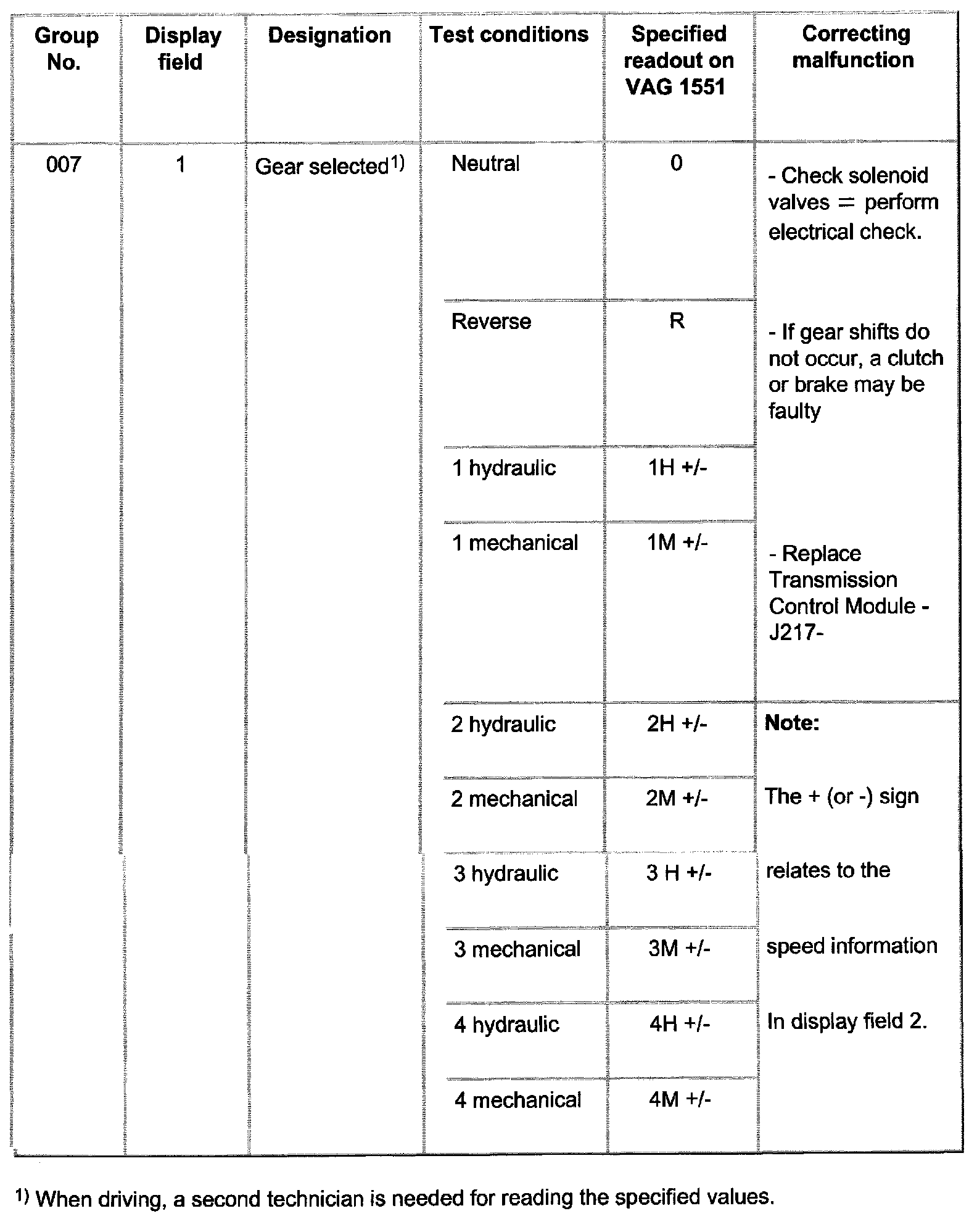 - The mechanical gear "M" is not always engaged. The control module can engage this gear dependent upon the driving situation. The lock-up clutch can be checked in display group number 005.