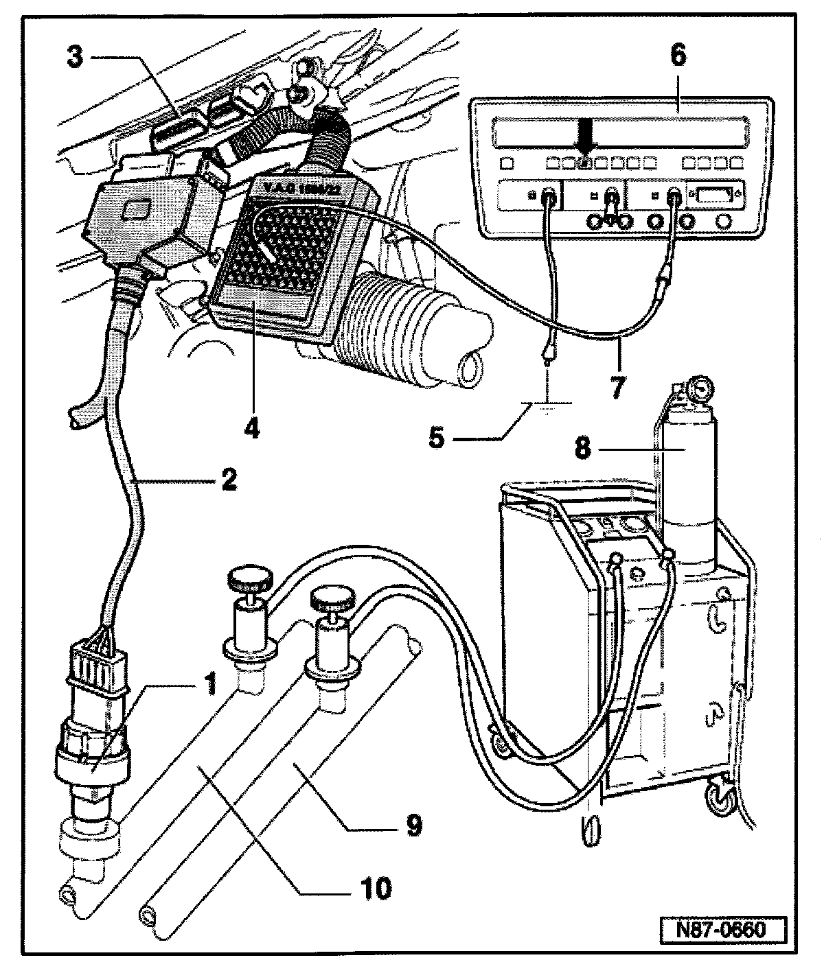 - Connect black clip from VAG 1767 to Ground (GND) -5-.