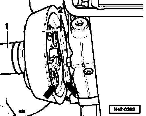 - It is essential that the installation position is marked -arrows - before the drive shaft is removed. If not installed properly, unbalance will be excessive.