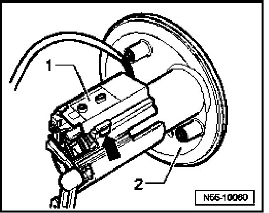 - Disengage catches -arrows- of micro-switch -1- from lock cylinder housing -2-.