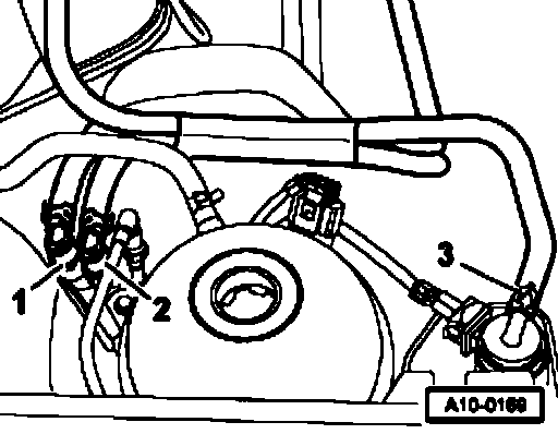 - Disconnect fuel supply line -1- off union by pressing locking ring -2- into union -3-.