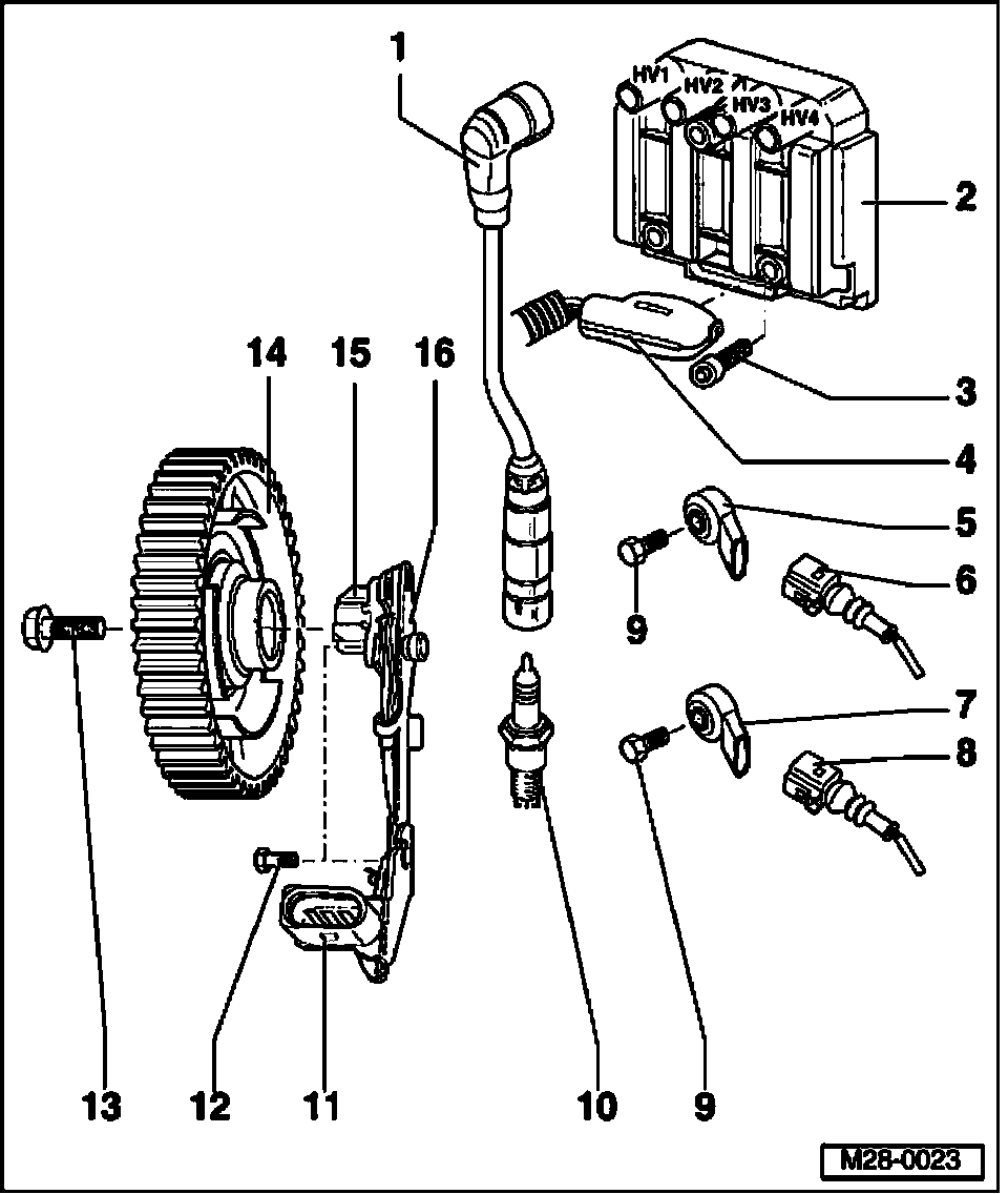 - Ignition wires connection: HV1 = Cylinder 1; HV2 = Cylinder 2; HV3 = Cylinder 3; HV4 = Cylinder 4