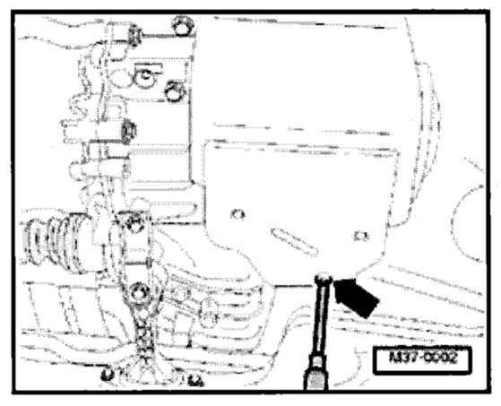 - Remove ATF level plug from transmission oil pan.