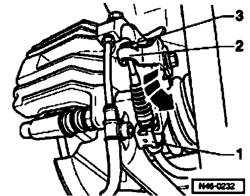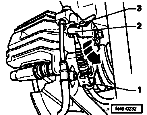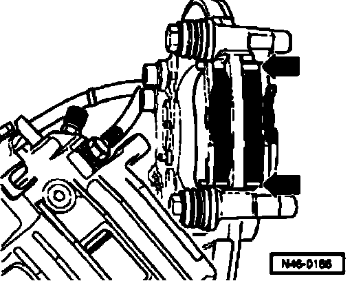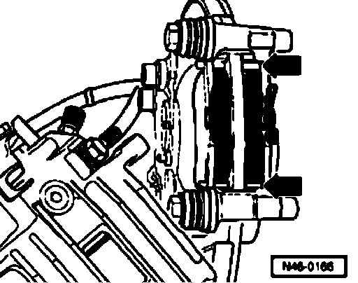 - Remove securing bolts from brake caliper housing, to do this counterhold on guide pins.