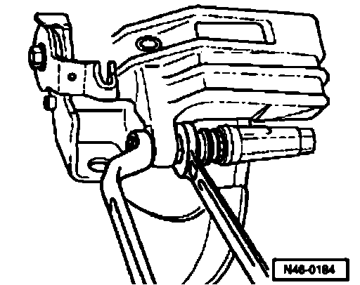 ^ If the piston is pushed back with a piston resetting tool, the automatic adjustment in the brake caliper will be destroyed.
