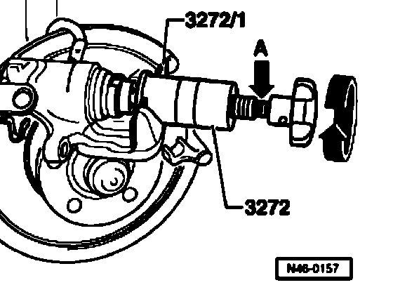 - Screw in piston by turning knurled wheel of special tool 3272 clockwise, do not damage protective cap when doing this.