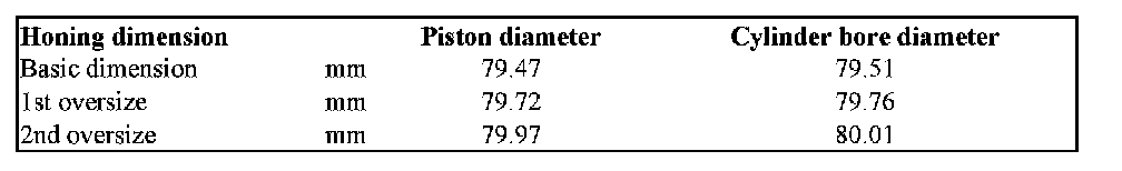 Piston and cylinder dimensions