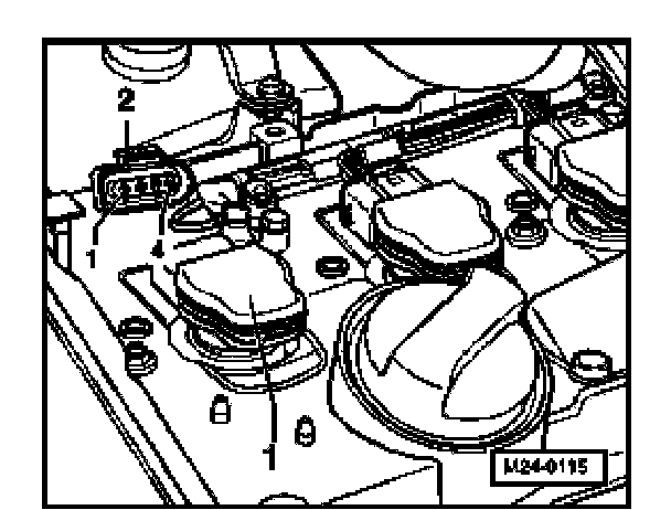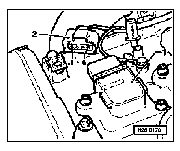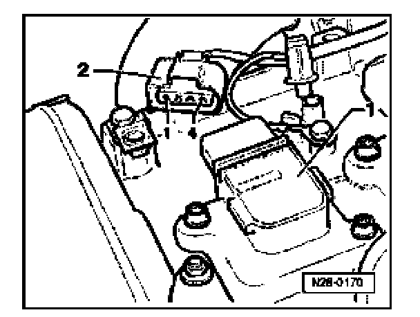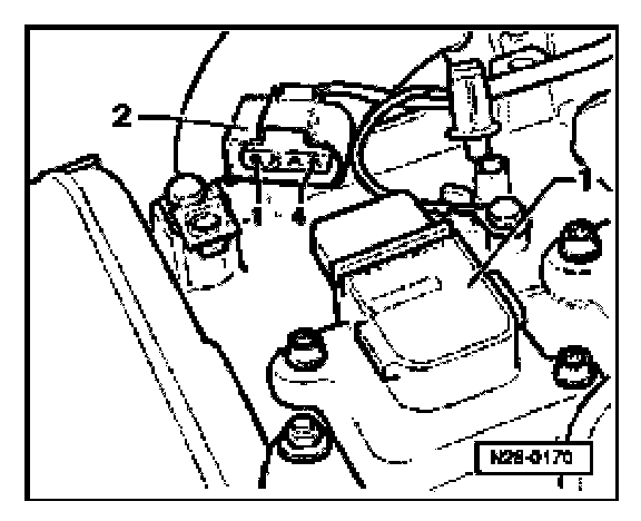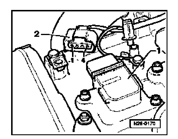 - Disconnect 4-pin connector -2- from ignition coil -1- to be checked.