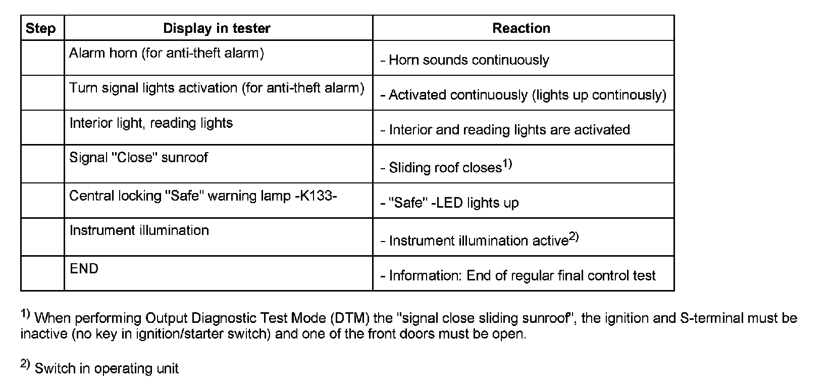 Reintroducing Final control diagnosis (Output Diagnostic Test Mode (DTM)) is possible only after terminating the On Board Diagnosis (OBD) and switching the ignition off and on again.