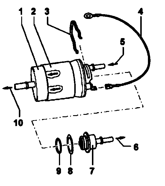 Note: The fuel filter is illustrated viewed from the front.