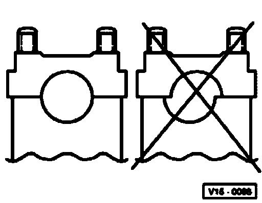 ^ When installing the bearing cap note offset. Before installing camshaft fit bearing caps and determine installed position.