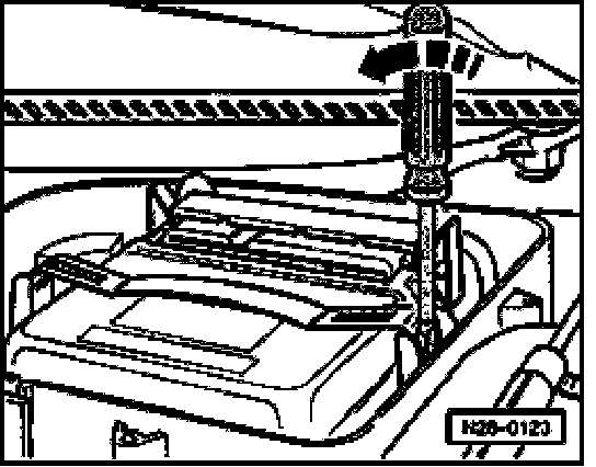 - Remove securing screws at cover of protective housing for control modules -arrows- and remove cover.