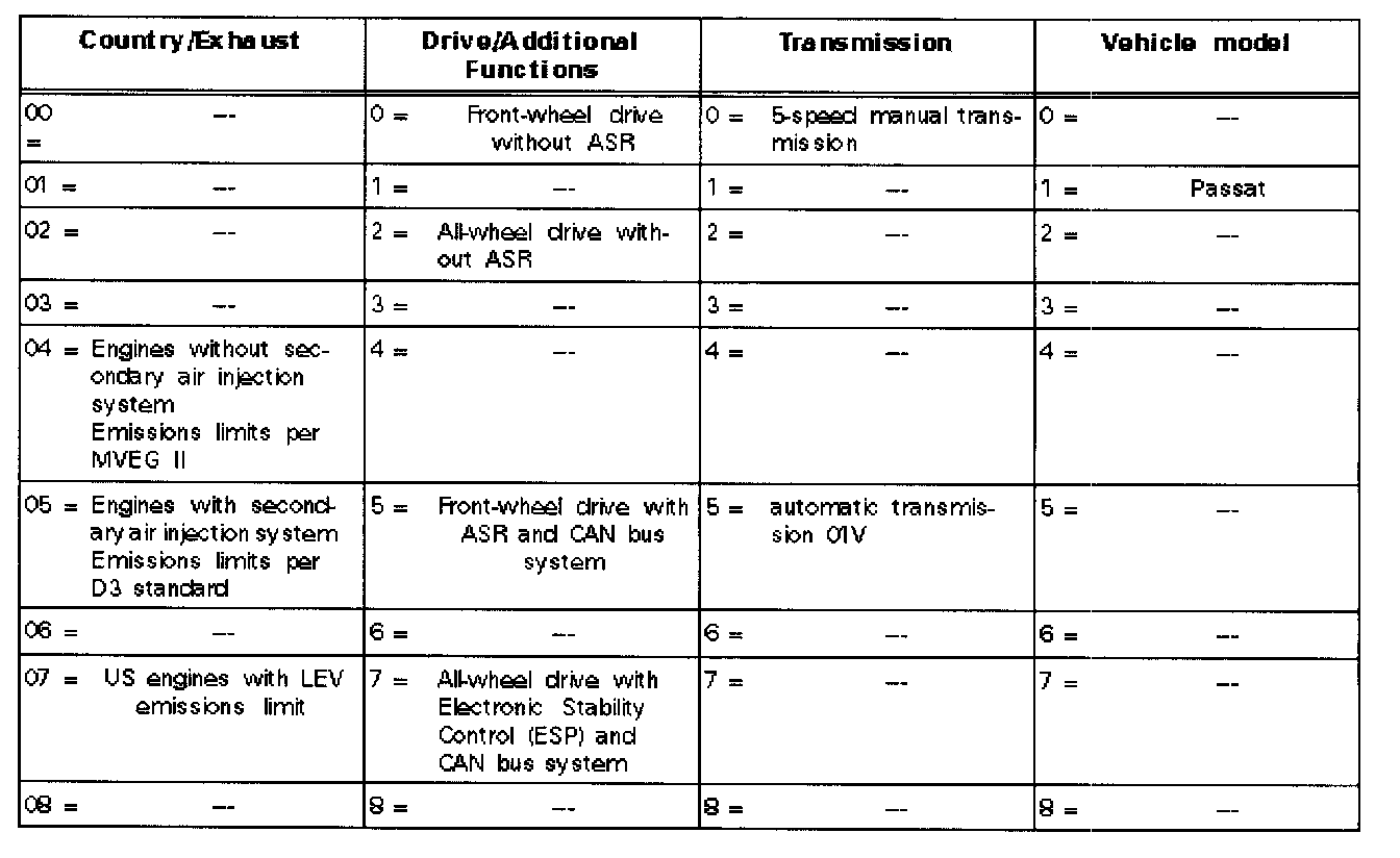 - During control module identification, a 5-digit code must always be indicated.