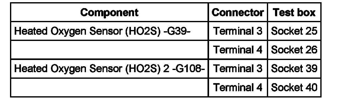- The respective fuses of Heated Oxygen Sensor (HO2S) -G39- and Heated Oxygen Sensor (HO2S) 2 -G108- must be OK