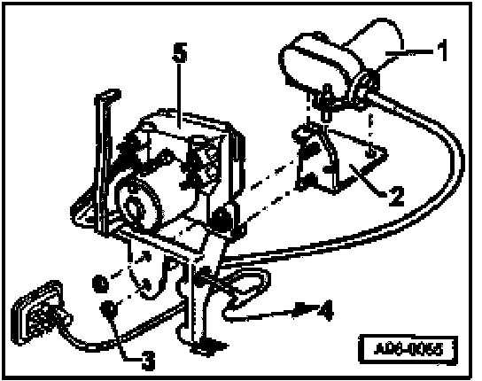- Remove securing nuts -3-, 5 Nm (44 in lb) and pull out pump from the wheel opening.