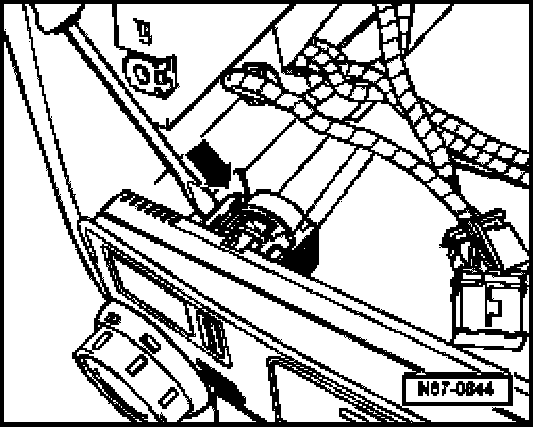 - Press lock in direction of -arrow- and slide control module out from instrument panel.