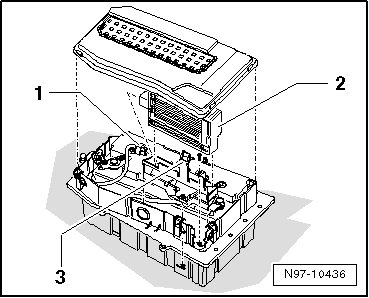 - Disengage retaining tab - 3 - and pull Heated Windshield Control Module (J505) - 2 - upward out of bracket, paying attention to lengths of connected wires.