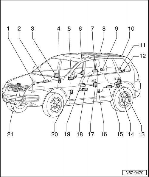 • Location: in area of rear roof crossmember, covered by roof trim.